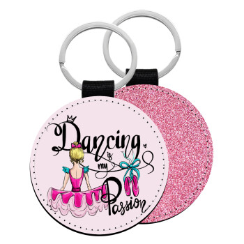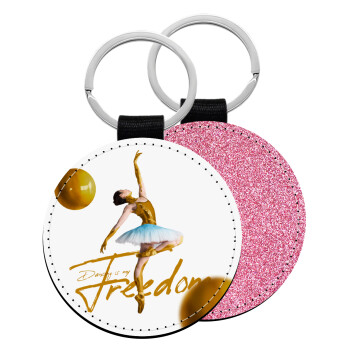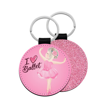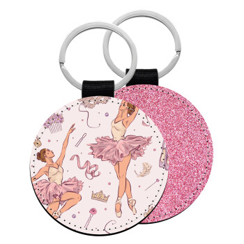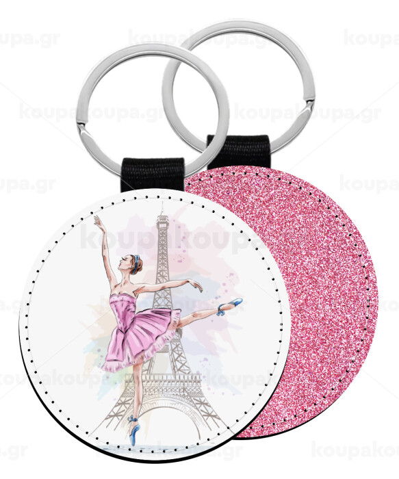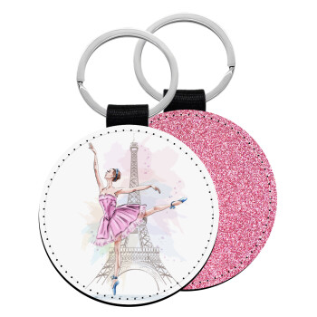 Ballerina in Paris, Μπρελόκ Δερματίνη, στρογγυλό ΡΟΖ (5cm)