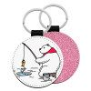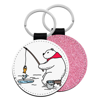Αρκούδα ψαρεύει, Μπρελόκ Δερματίνη, στρογγυλό ΡΟΖ (5cm)