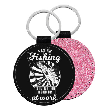 A bad day FISHING is better than a good day at work, Μπρελόκ Δερματίνη, στρογγυλό ΡΟΖ (5cm)
