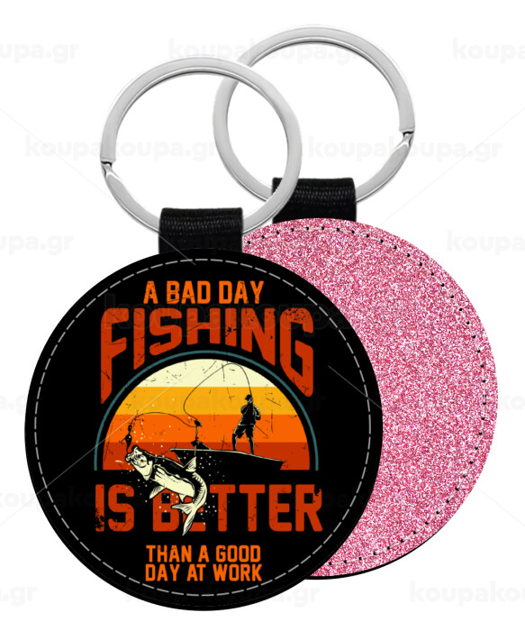A bad day FISHING is better than a good day at work, Μπρελόκ Δερματίνη, στρογγυλό ΡΟΖ (5cm)