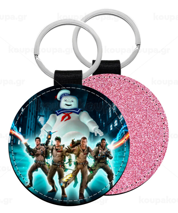 Ghostbusters team, Μπρελόκ Δερματίνη, στρογγυλό ΡΟΖ (5cm)
