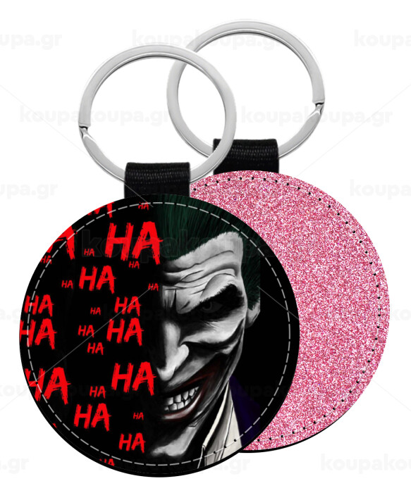 Joker hahaha, Μπρελόκ Δερματίνη, στρογγυλό ΡΟΖ (5cm)