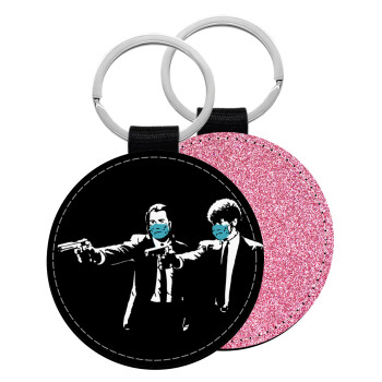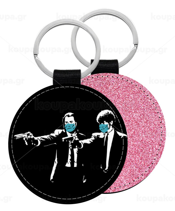 Pulp Fiction guns, Μπρελόκ Δερματίνη, στρογγυλό ΡΟΖ (5cm)
