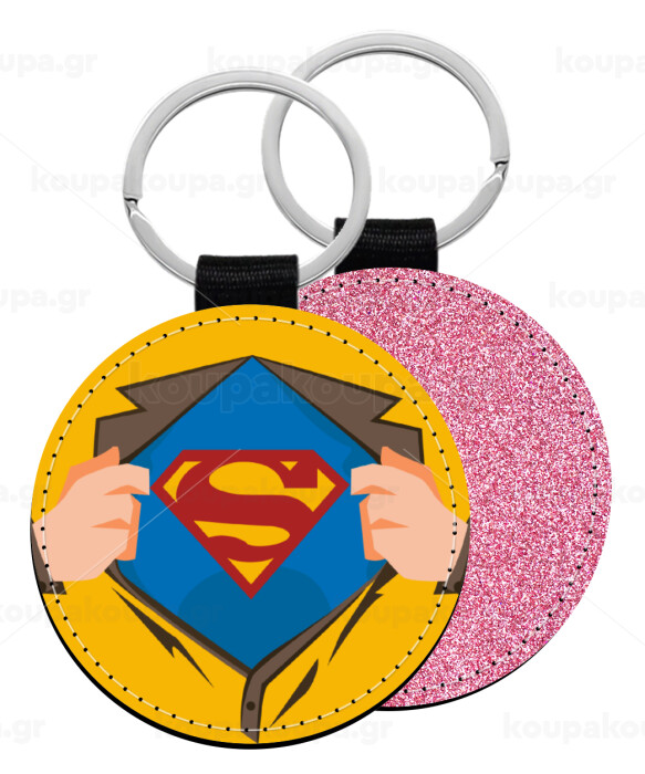 Superman hands, Μπρελόκ Δερματίνη, στρογγυλό ΡΟΖ (5cm)