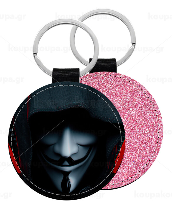V for Vendetta, Μπρελόκ Δερματίνη, στρογγυλό ΡΟΖ (5cm)