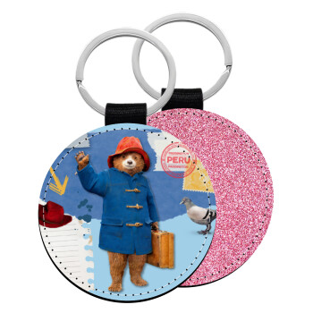 Αρκουδάκι Πάντινγκτον, Μπρελόκ Δερματίνη, στρογγυλό ΡΟΖ (5cm)