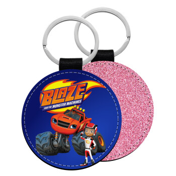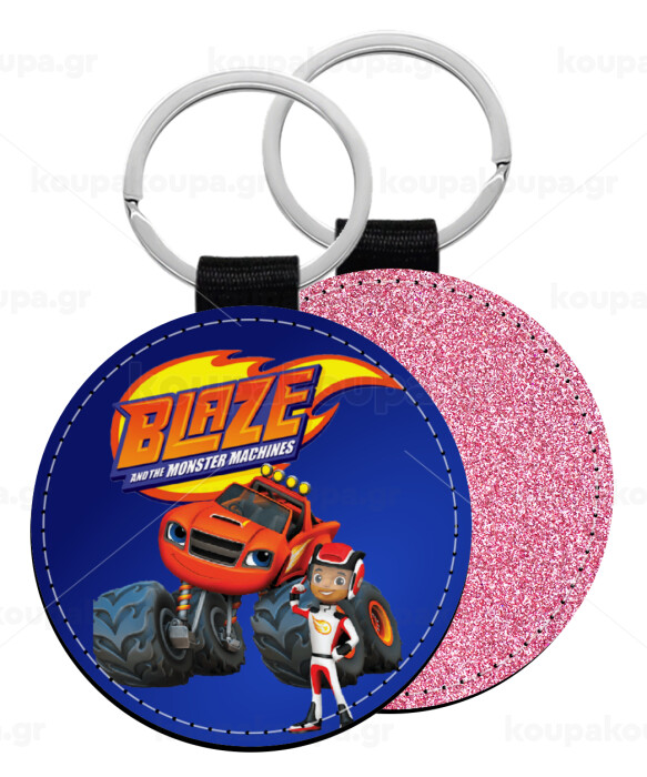 Ο Μπλέιζ και οι Φίλοι του, Μπρελόκ Δερματίνη, στρογγυλό ΡΟΖ (5cm)