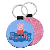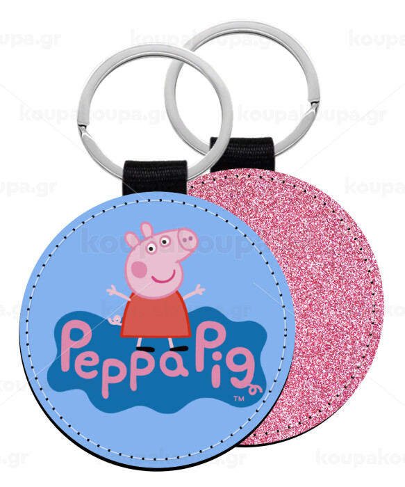 Πέππα το γουρουνάκι μπλε με όνομα, Μπρελόκ Δερματίνη, στρογγυλό ΡΟΖ (5cm)