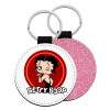 Betty Boop kiss, Μπρελόκ Δερματίνη, στρογγυλό ΡΟΖ (5cm)
