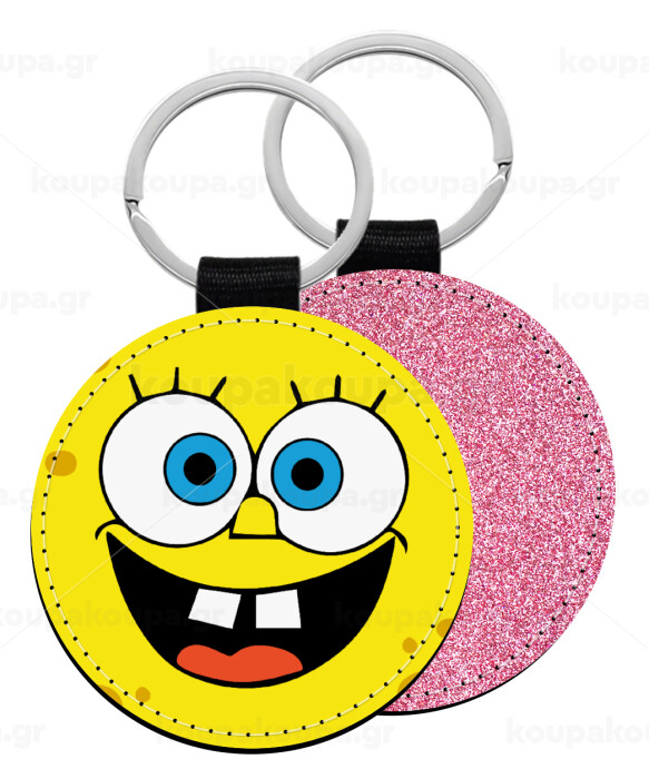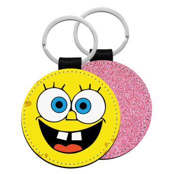 Μπομπ, Μπρελόκ Δερματίνη, στρογγυλό ΡΟΖ (5cm)