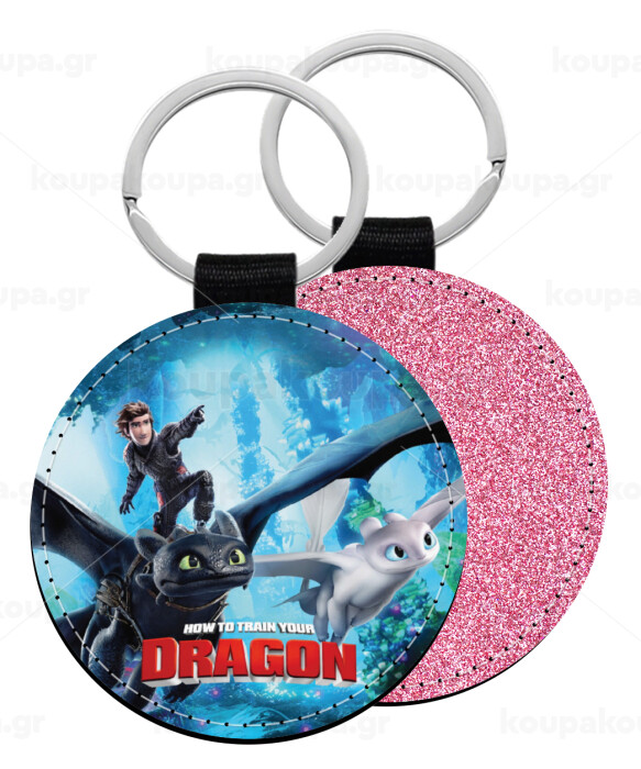 How to train your dragon, Μπρελόκ Δερματίνη, στρογγυλό ΡΟΖ (5cm)