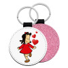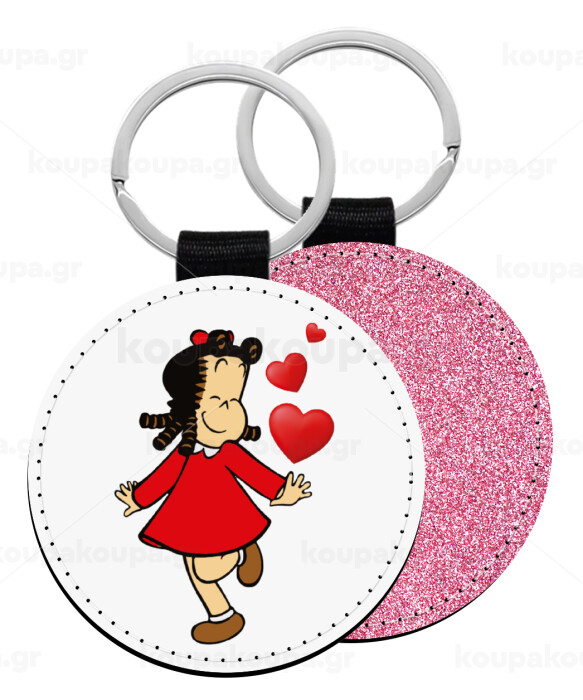Η μικρή Λουλού, Μπρελόκ Δερματίνη, στρογγυλό ΡΟΖ (5cm)