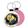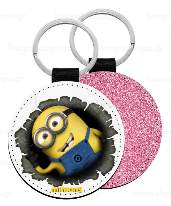 Minions hi, Μπρελόκ Δερματίνη, στρογγυλό ΡΟΖ (5cm)