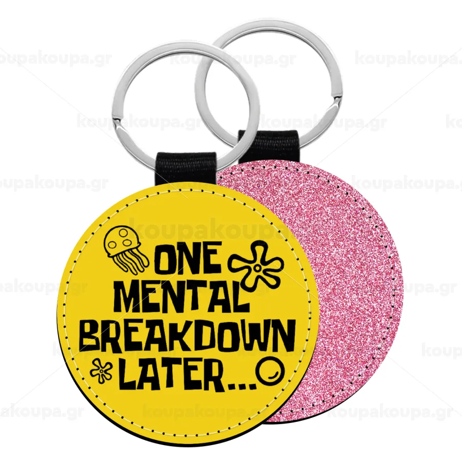one mental breakdown later bob spongebob, Μπρελόκ Δερματίνη, στρογγυλό ΡΟΖ (5cm)