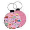 Peppa pig Characters, Μπρελόκ Δερματίνη, στρογγυλό ΡΟΖ (5cm)