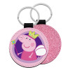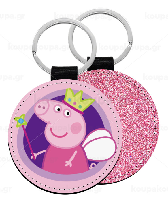 Peppa pig Queen, Μπρελόκ Δερματίνη, στρογγυλό ΡΟΖ (5cm)