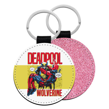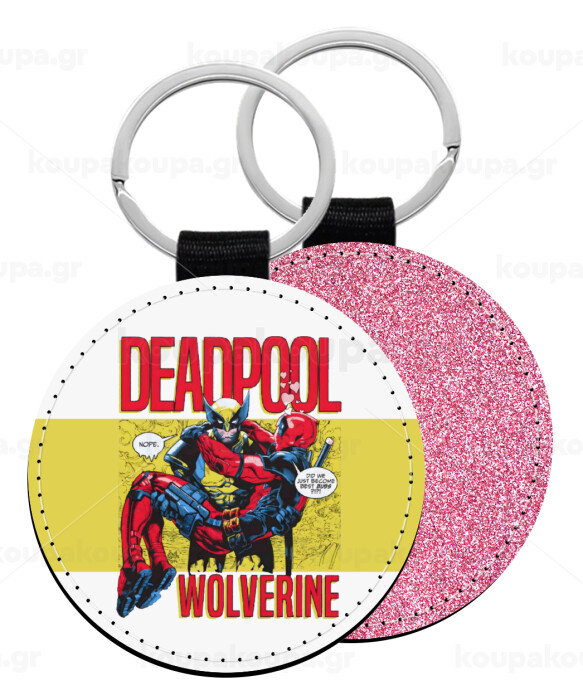 Superhero Deadpool Wolverine, Μπρελόκ Δερματίνη, στρογγυλό ΡΟΖ (5cm)