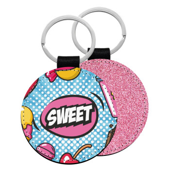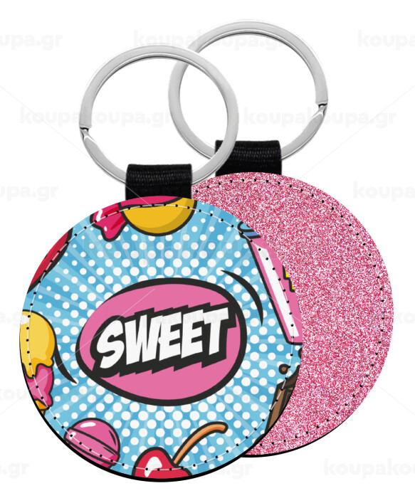 SWEET, Μπρελόκ Δερματίνη, στρογγυλό ΡΟΖ (5cm)