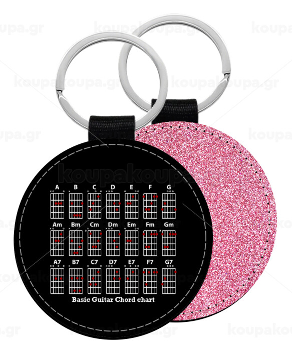 Συγχορδίες κιθάρας, Μπρελόκ Δερματίνη, στρογγυλό ΡΟΖ (5cm)