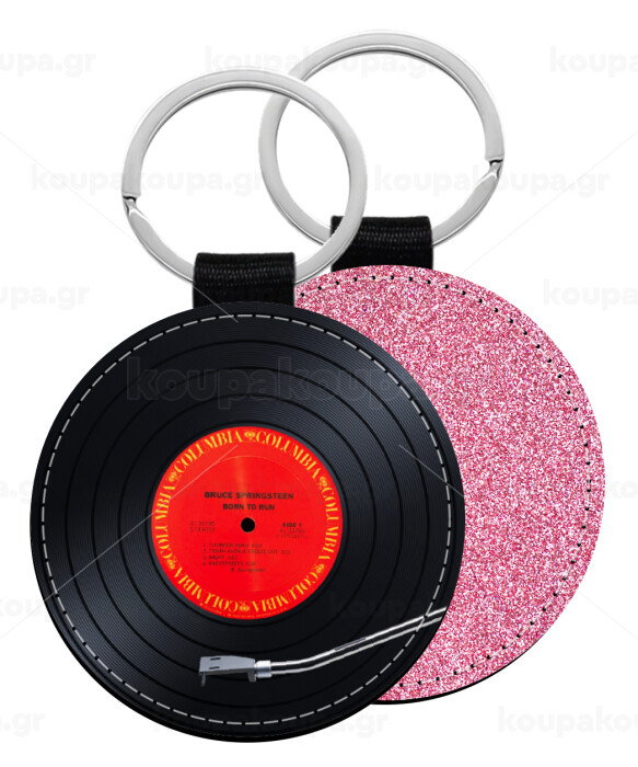 Columbia records bruce springsteen, Μπρελόκ Δερματίνη, στρογγυλό ΡΟΖ (5cm)