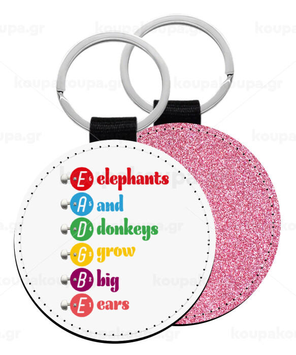 Elephants And Donkeys Grow Big Ears, Μπρελόκ Δερματίνη, στρογγυλό ΡΟΖ (5cm)
