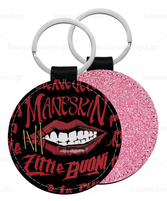 Maneskin lips, Μπρελόκ Δερματίνη, στρογγυλό ΡΟΖ (5cm)