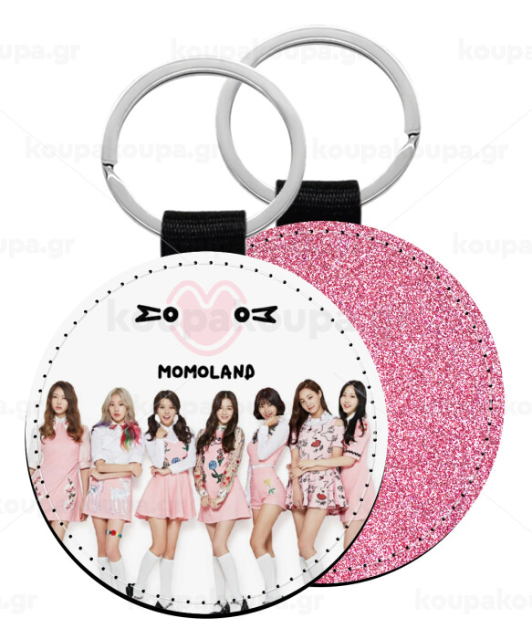 Momoland pink, Μπρελόκ Δερματίνη, στρογγυλό ΡΟΖ (5cm)