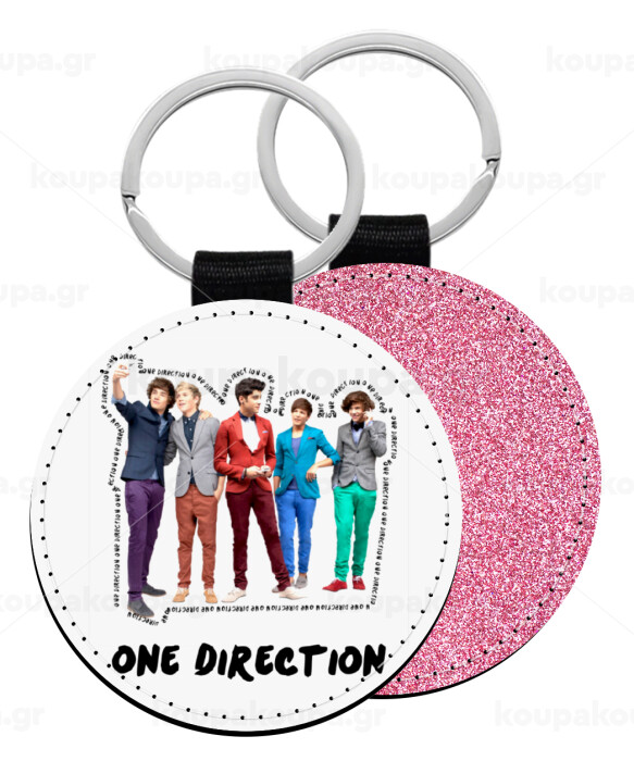 One Direction , Μπρελόκ Δερματίνη, στρογγυλό ΡΟΖ (5cm)