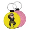 PSY - GANGNAM STYLE, Μπρελόκ Δερματίνη, στρογγυλό ΡΟΖ (5cm)