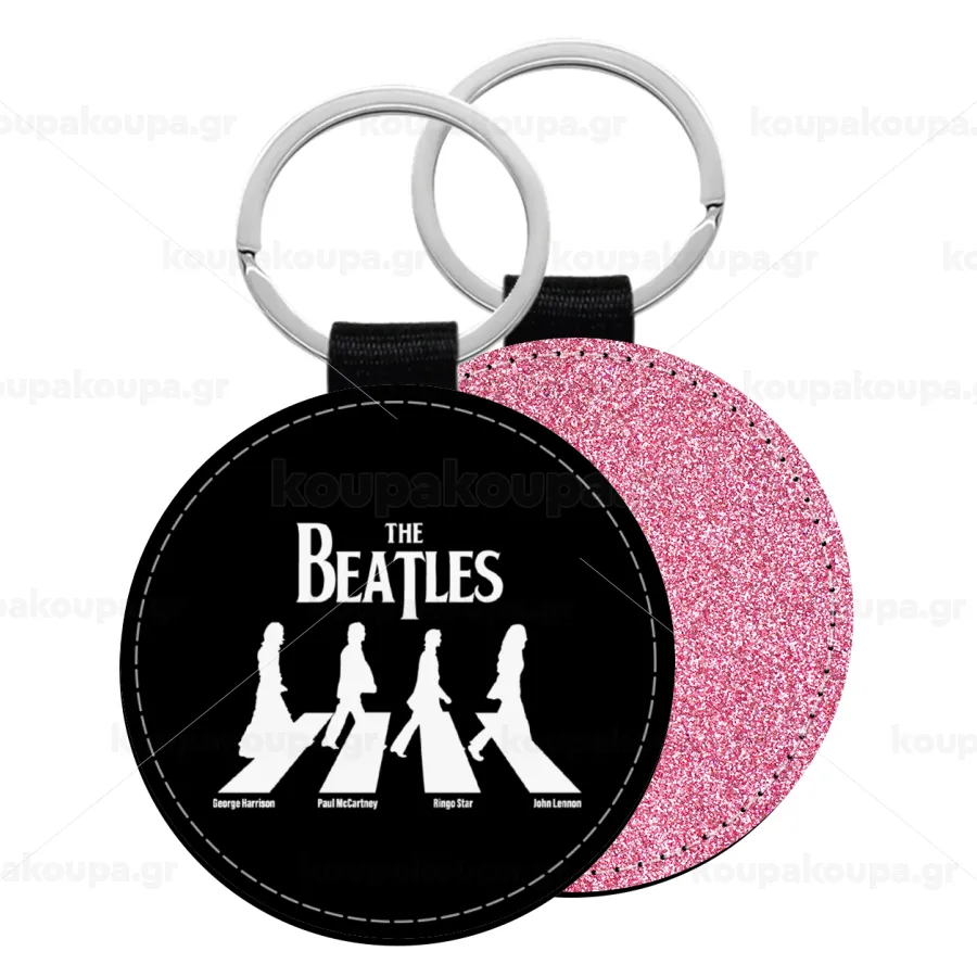 The Beatles, Abbey Road, Μπρελόκ Δερματίνη, στρογγυλό ΡΟΖ (5cm)