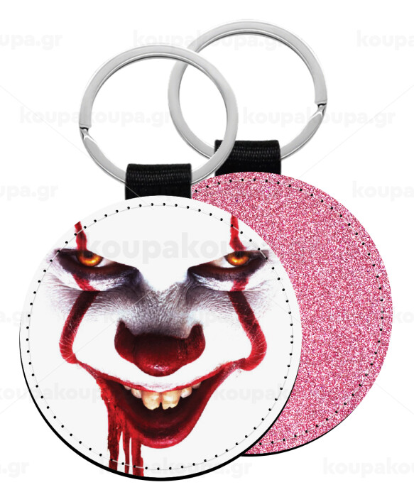 IT Pennywise, Μπρελόκ Δερματίνη, στρογγυλό ΡΟΖ (5cm)