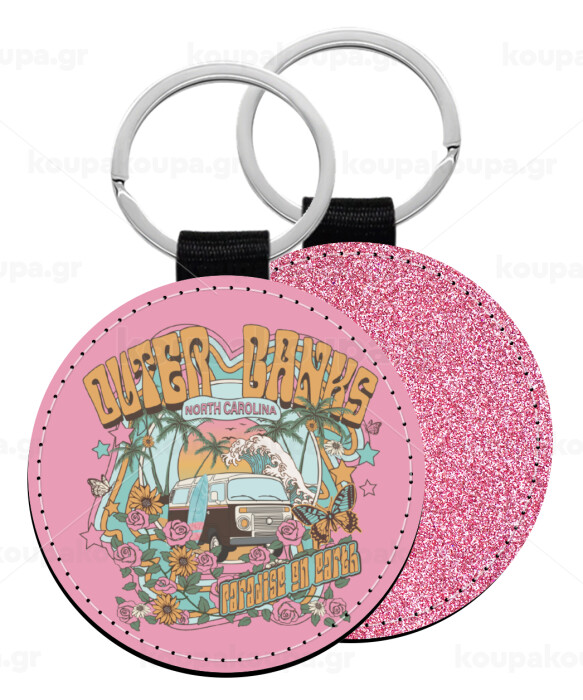 Outerbanks paradise on earth, Μπρελόκ Δερματίνη, στρογγυλό ΡΟΖ (5cm)