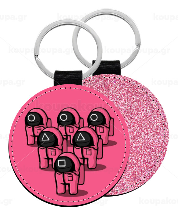 The squid game among us, Μπρελόκ Δερματίνη, στρογγυλό ΡΟΖ (5cm)