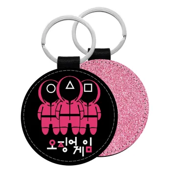 The squid game, Μπρελόκ Δερματίνη, στρογγυλό ΡΟΖ (5cm)