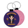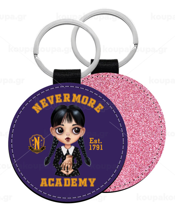 Wednesday Adams, nevermore, Μπρελόκ Δερματίνη, στρογγυλό ΡΟΖ (5cm)