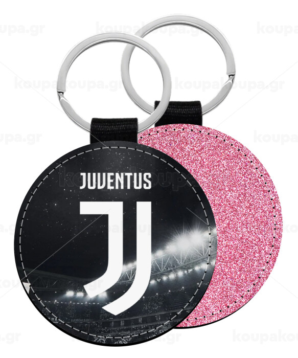 FC Juventus, Μπρελόκ Δερματίνη, στρογγυλό ΡΟΖ (5cm)
