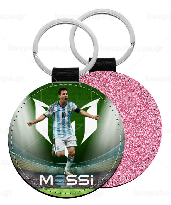 Λιονέλ Μέσι, Leo Messi, Μπρελόκ Δερματίνη, στρογγυλό ΡΟΖ (5cm)