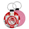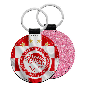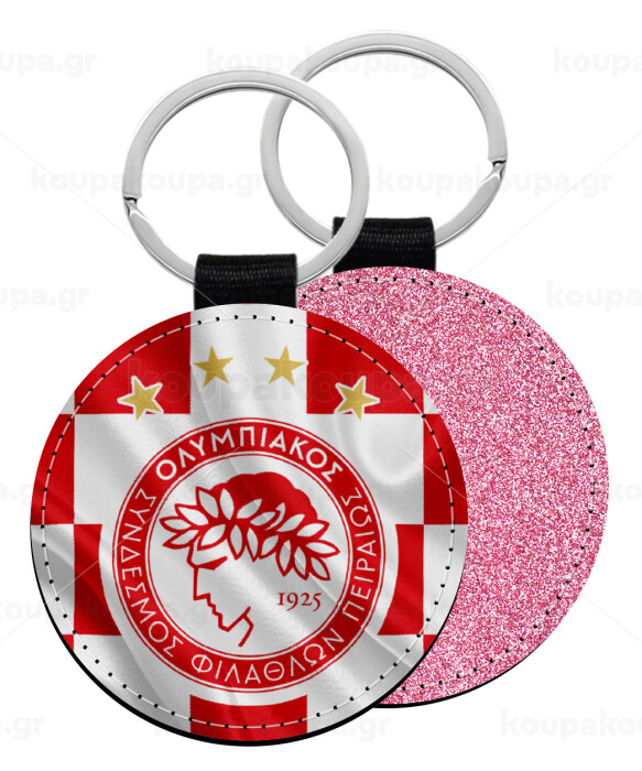 Olympiakos flag, Μπρελόκ Δερματίνη, στρογγυλό ΡΟΖ (5cm)