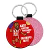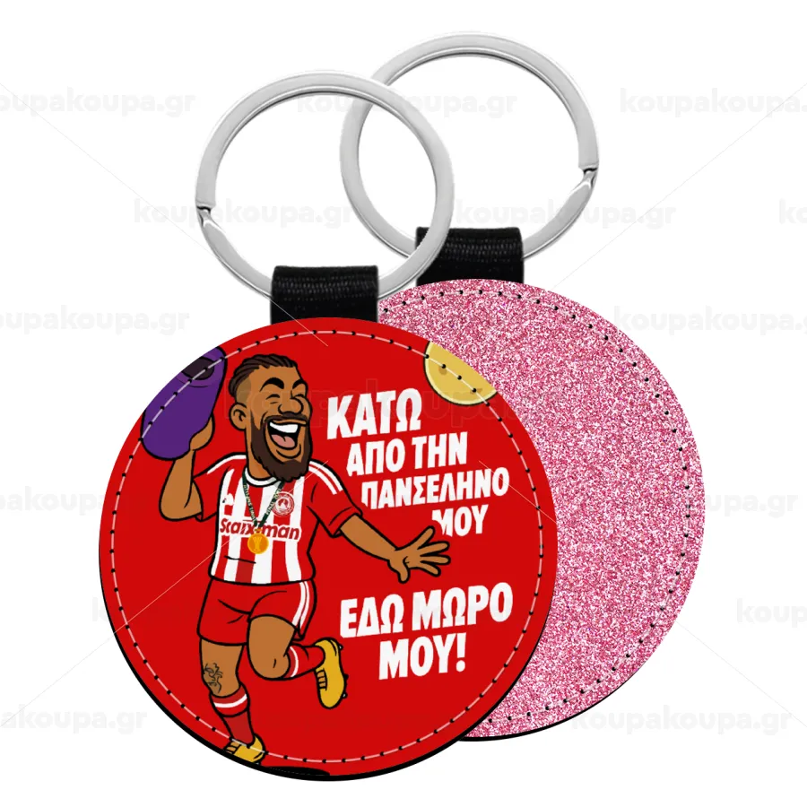Ροντινέι, "ΚΑΤΩ ΑΠΟ ΤΗΝ ΠΑΝΣΕΛΗΝΟ ΜΟΥ!", Μπρελόκ Δερματίνη, στρογγυλό ΡΟΖ (5cm)