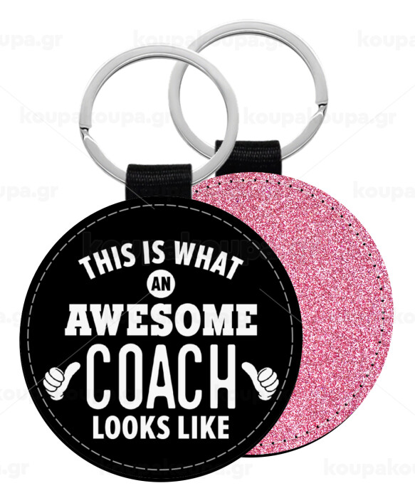 This is what an awesome COACH looks like!, Μπρελόκ Δερματίνη, στρογγυλό ΡΟΖ (5cm)