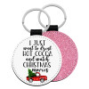 I just want to drink hot cocoa and watch christmas movies pickup car, Μπρελόκ Δερματίνη, στρογγυλό ΡΟΖ (5cm)