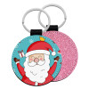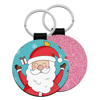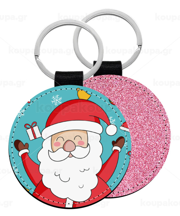 Santa Claus gifts, Μπρελόκ Δερματίνη, στρογγυλό ΡΟΖ (5cm)