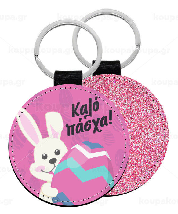 Καλό πάσχα, Μπρελόκ Δερματίνη, στρογγυλό ΡΟΖ (5cm)