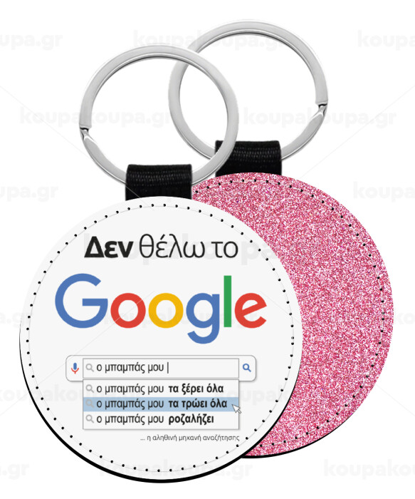 Δεν θέλω το Google, ο μπαμπάς μου..., Μπρελόκ Δερματίνη, στρογγυλό ΡΟΖ (5cm)