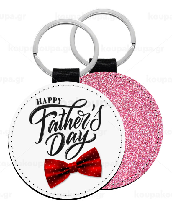 Happy father's Days, Μπρελόκ Δερματίνη, στρογγυλό ΡΟΖ (5cm)