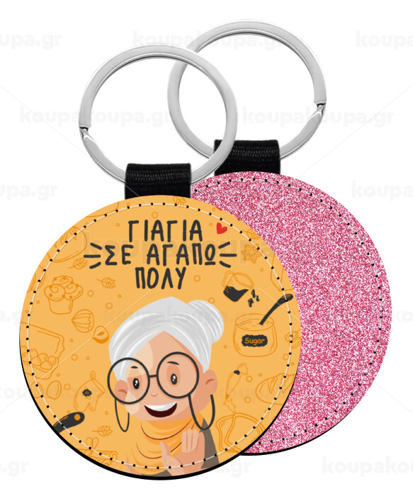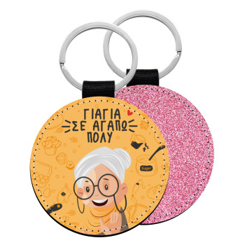 Γιαγιά σε αγαπώ πολύ!, Μπρελόκ Δερματίνη, στρογγυλό ΡΟΖ (5cm)