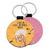 Mπρελόκ από δερματίνη με glitter στην μία πλευρά και στην άλλη δερματίνη μεγάλης αντοχής. Κρίκος ασφάλειας για τα κλειδιά.