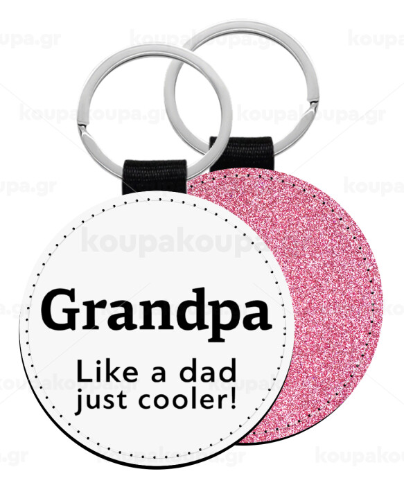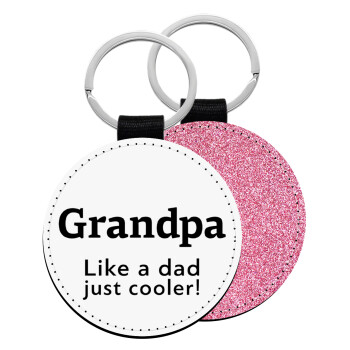 Grandpa, like a dad, just cooler, Μπρελόκ Δερματίνη, στρογγυλό ΡΟΖ (5cm)