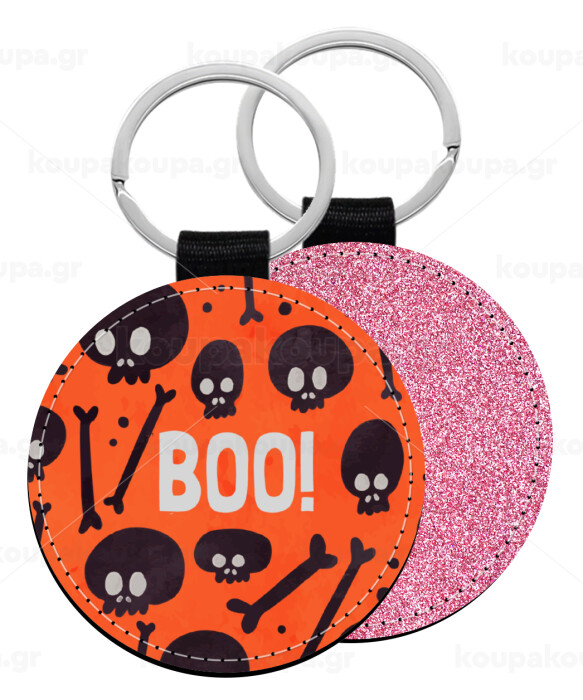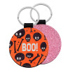 Halloween boo, Μπρελόκ Δερματίνη, στρογγυλό ΡΟΖ (5cm)