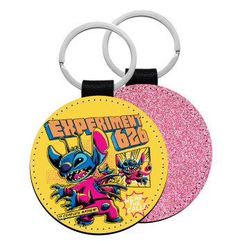 Stitch Experiment 626, Μπρελόκ Δερματίνη, στρογγυλό ΡΟΖ (5cm)